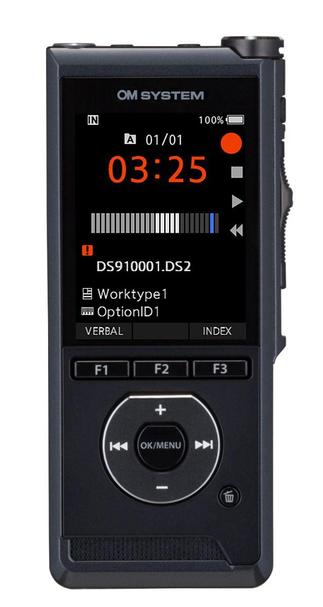 The OM System DS-9100 Portable Dictation Recorder is designed for professionals who need secure, high-quality mobile dictation. Its dual microphones, full-colour display, and robust encryption ensure clear recordings and data protection.
