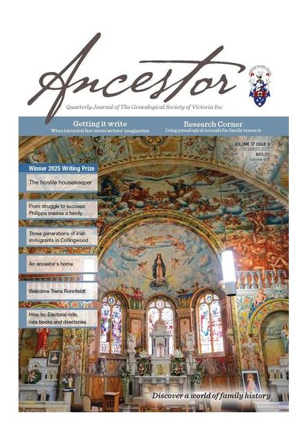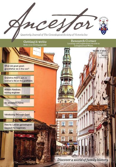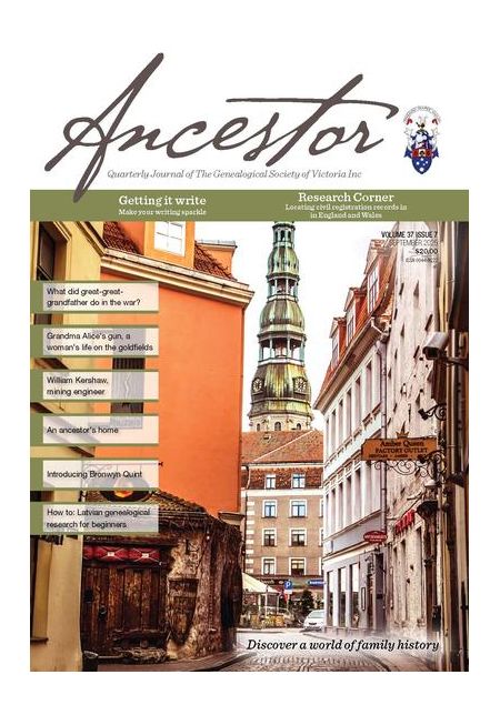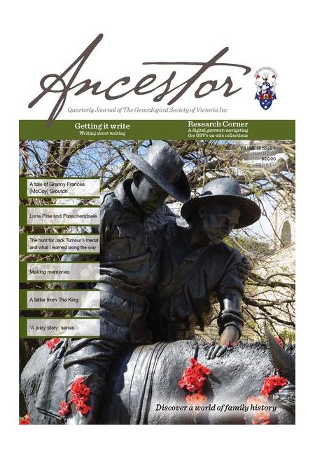 Ancestor is the quarterly journal of The Genealogical Society of Victoria. The Society's award winning journal is published quarterly; March, June, September & December.