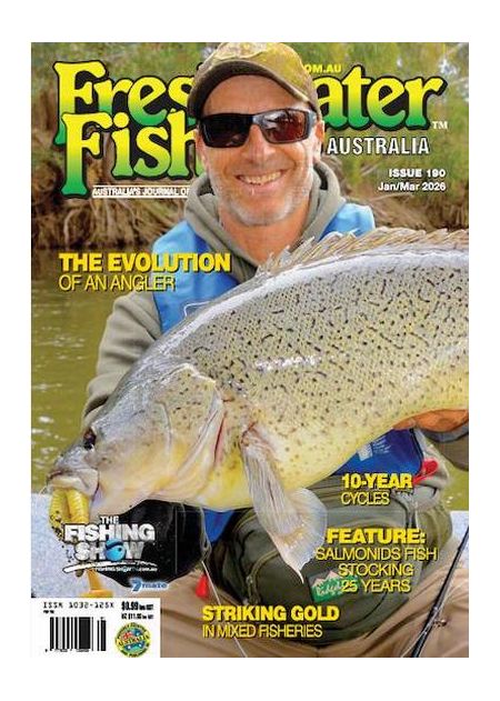 In this Summer issue of Freshwater Fishing Magazine 190. Enhancing an existing understanding of fish and the waterways you fish will provide anglers with a life time of success on the water. Here Andrew Mcgovern detail some simple ways to re-set and continue your evolution as an angler. Lyndon Anlezark Having fished 10-year cycles on Queensland barramundi and bass lakes and Northern Territory, rivers, billabongs and dams, it’s been interesting to note cycles when viewed through the lens of a decade. Keen Queensland angler Dave Magner outlines how to specifically target golden perch in rivers which contain a mix of native species. Featuring, recreational fisheries management update and Victoria and New South Wales salmonids fish stocking for 25 years. Plus of course, there’s all the latest gear, reviews and more.