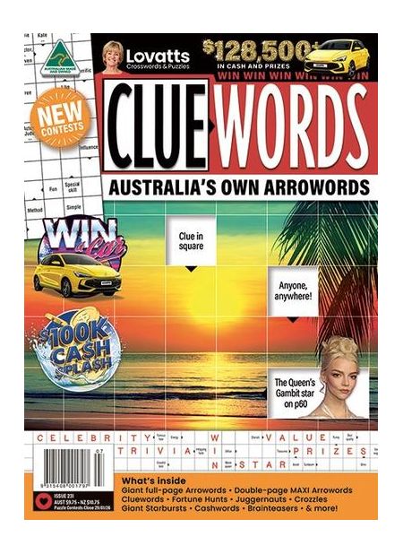 Cluewords magazine features a generous sprinkling of celebrity-themed arrowords, a double-page arroword, anagram puzzles, general knowledge and cryptic crosswords, and for those who love a challenge, our toughie, aptly called the Baffler!