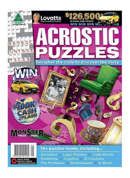 Introducing the new and improved Acrostic Puzzles - it’s Handy Acrostic but bigger and better than ever! With the same fun and interesting themed puzzles you know and love in Handy Acrostic, Acrostic Puzzles now has 70+ puzzles to solve, plus 3 exciting competitions with cash and prizes up for grabs. Whether you’re a novice or a seasoned Acrostic pro, the larger format and easy-to-read print will make your Acrostic solving even more enjoyable.