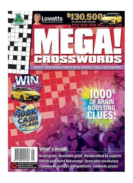 MEGA! Crosswords® is a favourite with those who love their crosswords straight. With giant crosswords in every issue, there are thousands of clues to delight word enthusiasts. The page layouts are clear and puzzler-friendly and most clues are solvable with your own word knowledge. There are a couple of tougher crosswords for those who like a challenge.