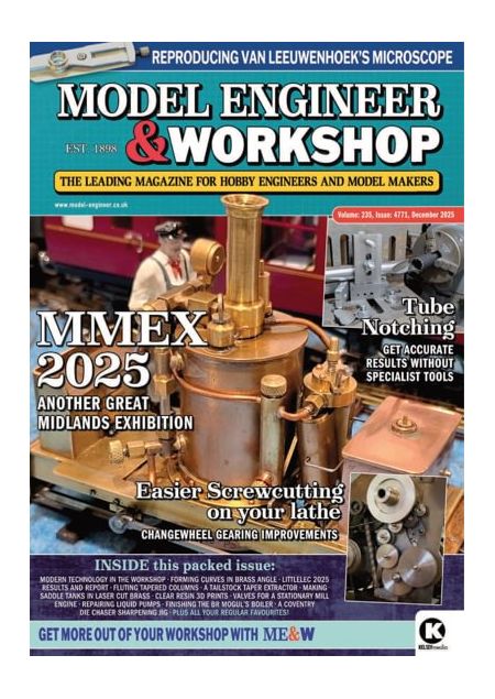 A subscription to Model Engineers Workshop is a must read for the serious model engineering hobbyists! Model Engineers' Workshop is a relatively new magazine, first published in 1990. Each issue features machines, both manual and CNC, tools, methods and processes. Historically Models Engineer's Workshop does not include articles on the construction of models but usually contains drawings for the construction of a machine, a tool or a machine accessory. Model Engineer magazine deals with machines, materials, processes and techniques for precision metalwork. Please allow up to 10-13 weeks for your first delivery.##