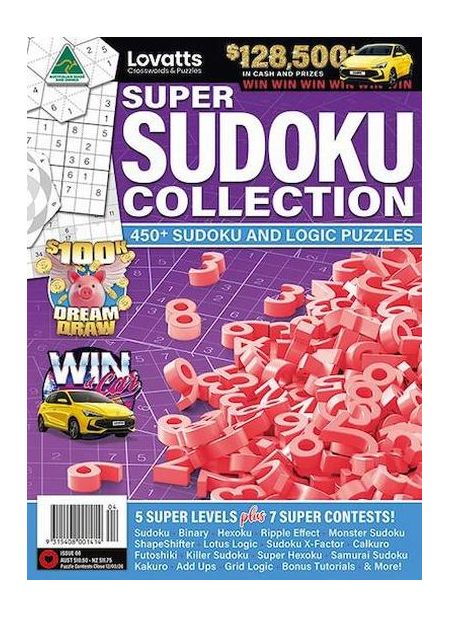 Unleash your logic skills with the Super Sudoku Collection! This bumper volume offers 120 pages of engaging puzzles, including Sudoku, Binary, Ripple Effect, Calkuro, Hexoku, and X-Factor. With 450+ puzzles, a variety of difficulty levels, and easy-to-follow tutorials, there’s something for everyone. Get ready for extra excitement with our super-sized Samurai Sudoku and Super Hexoku puzzles. Plus, with great competitions offering over $124,490 in cash and prizes, you’ll love the brain-boosting excitement this collection brings! Please allow up to 12-21 weeks for your first delivery.##