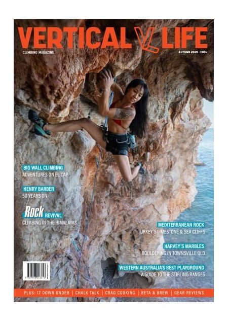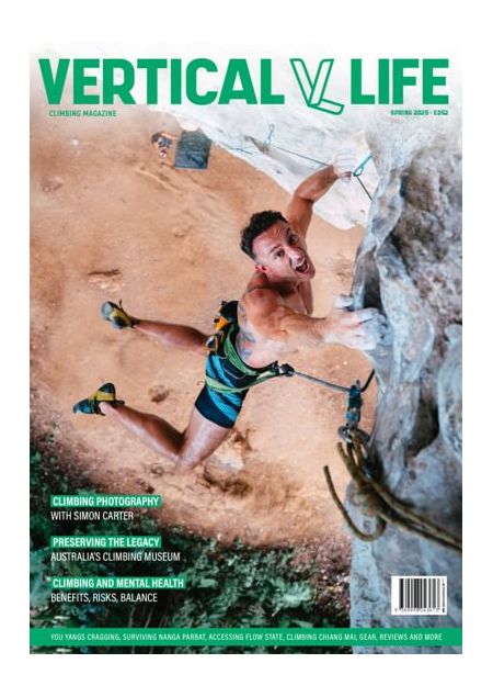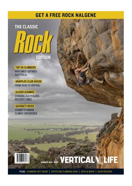 Our fiftieth issue—Vertical Life #50—is here for autumn ‘25. With a retro cover to celebrate this milestone, inside the mag we look back over the years with one of VL’s founders, Simon Madden. We also take a deep look at the world renown climbing destination of Dyuritte/Arapiles. With the shadow of proposed climbing bans looming, VL chats to some of the crags stalwarts about their decades climbing on some of Australia's best rock. We also look back over the years with a historical photographic special on Arapiles, and Kate Proctor tells us how she got the shot during a "rest day" at The Pines. With Reel Rock 19 headed our way from March, we get behind the scenes and chat to two of the stars of the show, Kai Lightner and Siebe Vanhee. If you’re from the south and it’s getting too cold to climb as autumn sets in, Cal Mathers has a guide to Barron Gorge—the best bouldering north of Brisbane. We get to know two time Olympian Oceana Mackenzie and hear how she keeps climbing fun, despite the intense competition.